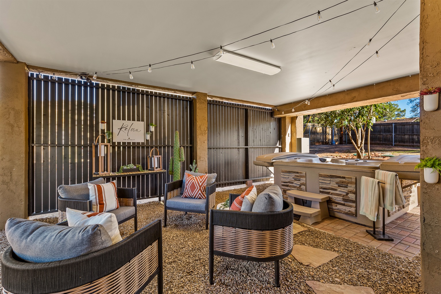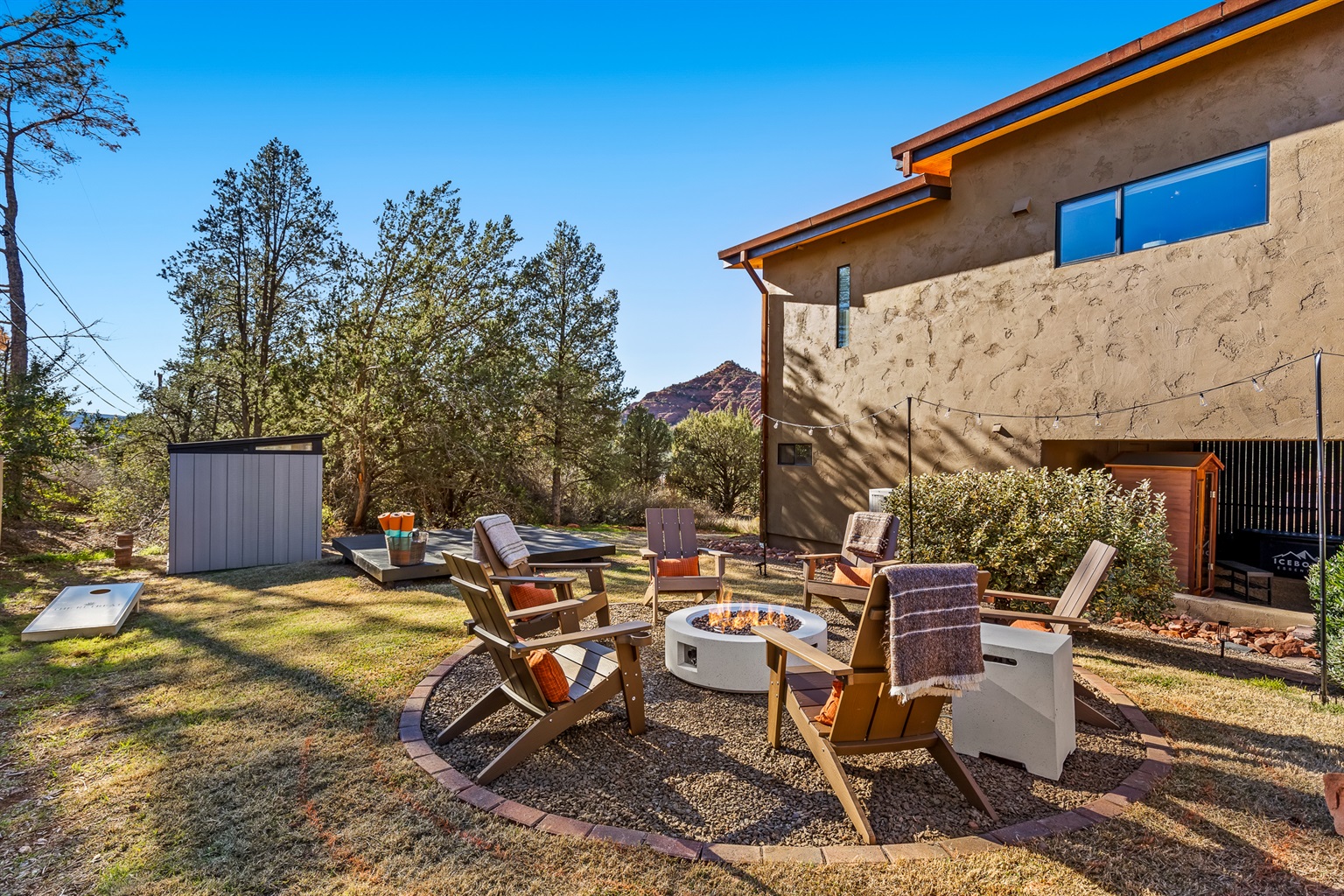 • Upper deck fire pit with comfortable seating for 4 and scenic red rock views