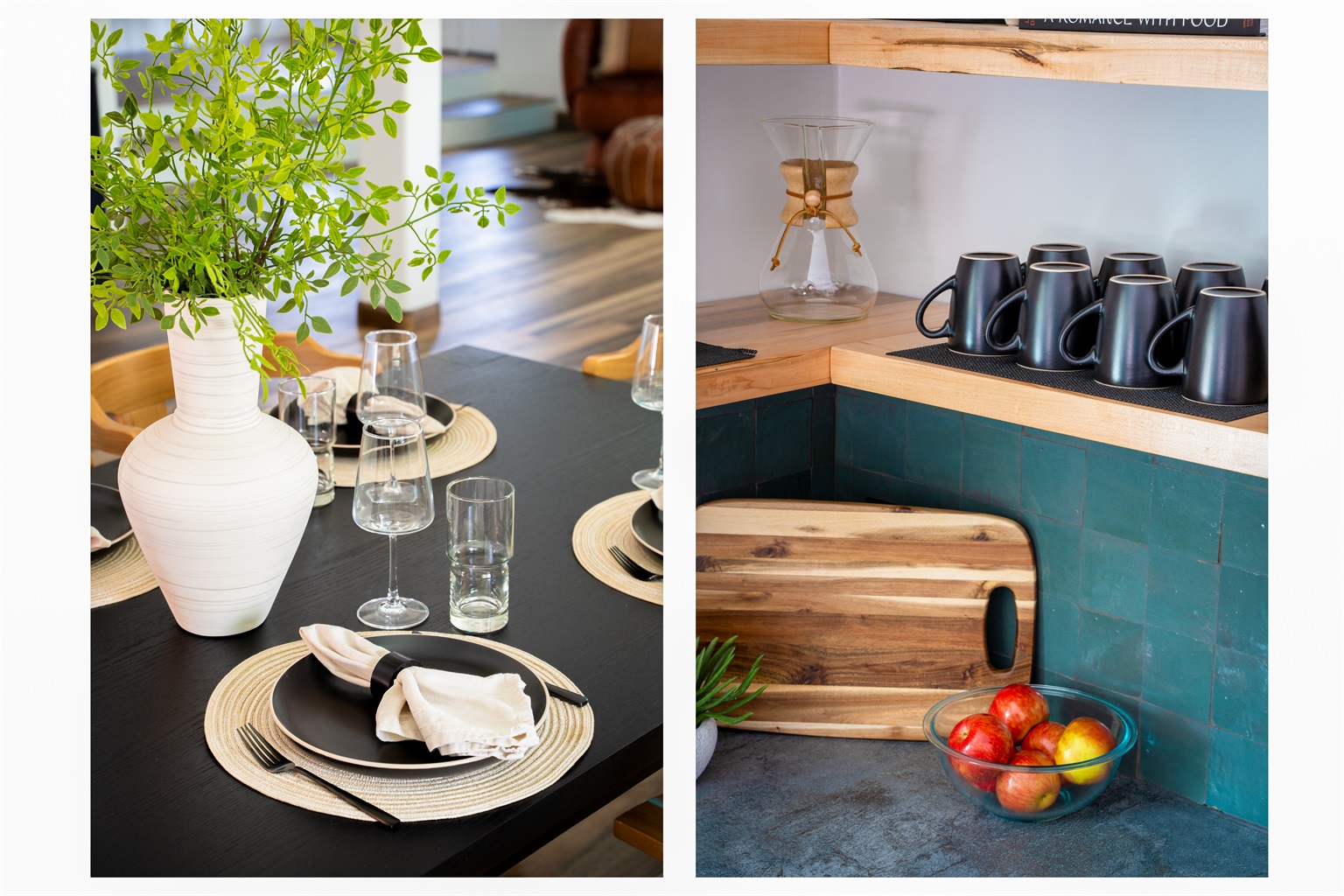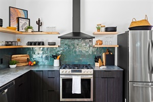 - Fully equipped kitchen with gas stove, stainless appliances, air fryer, crockpot, and coffee maker